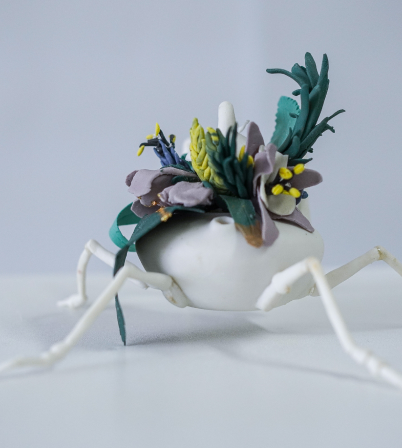 Die Körper der Porzellanwesen sind an funktionelle Teekannen angelehnt, die in der Welt der Keramik einen besonderen Stellenwert einnehmen. Durch die Hinzufügung von insektenhaften Attributen, wie den Beinen, Antennen, oder der Form der Teekannen, nehmen sie das Aussehen kleiner Insekten an, und aus ihren Körpern erblühen zarte Blumen. Diese filigranen Pflanzen sind nicht nur von künstlerischer Schönheit, sondern dienen auch als Bioindikatoren, die die Natur widerspiegeln, in der sie leben.